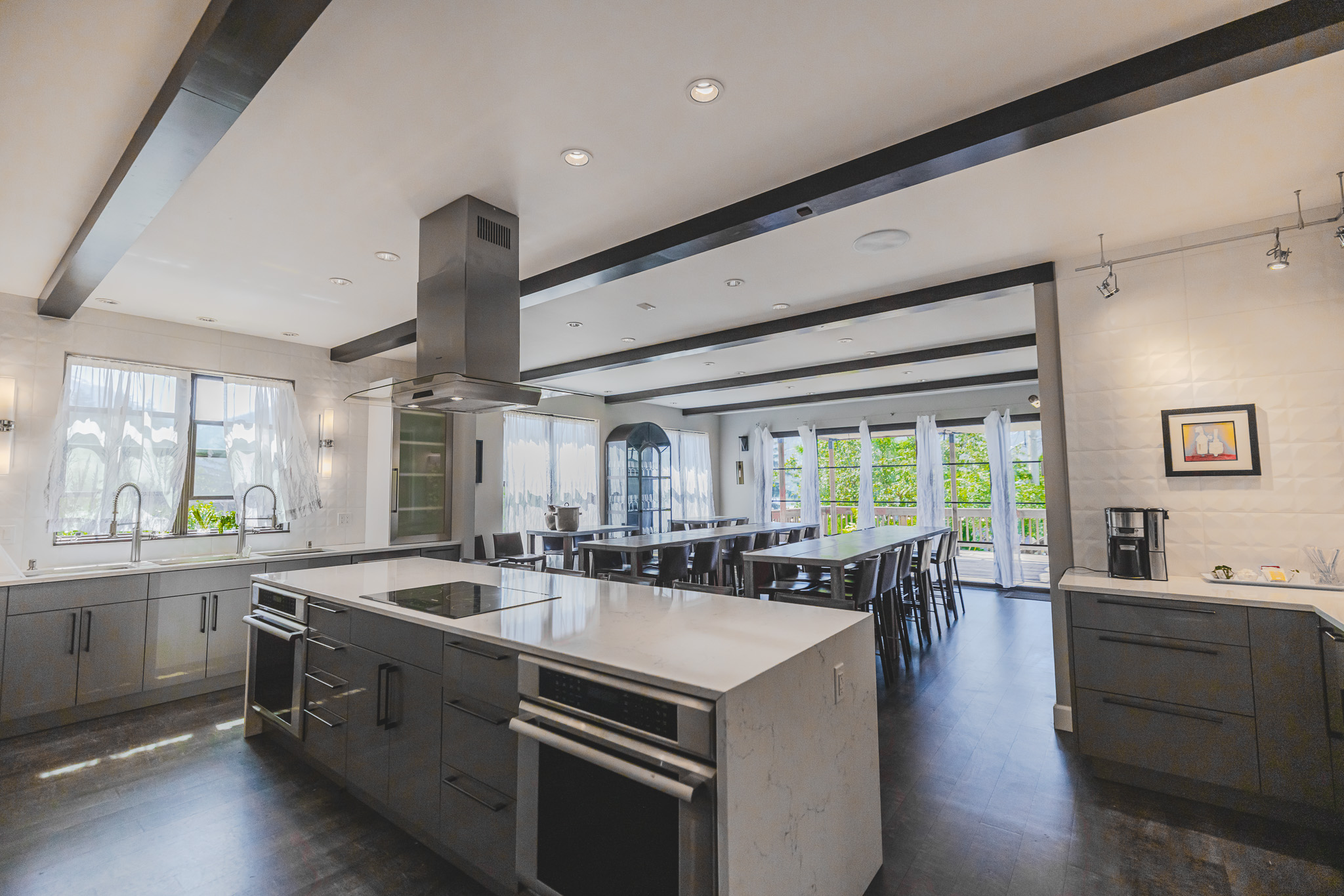 Boasting an extensive range of amenities, this remarkable property comprises two versatile meeting rooms, eight comfortable sleeping rooms with a total capacity for sixteen guests, and six indulgent suites.