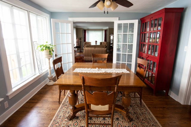 Informal dining adjacent opens thru french doors to the barrell ceiling screen room.
