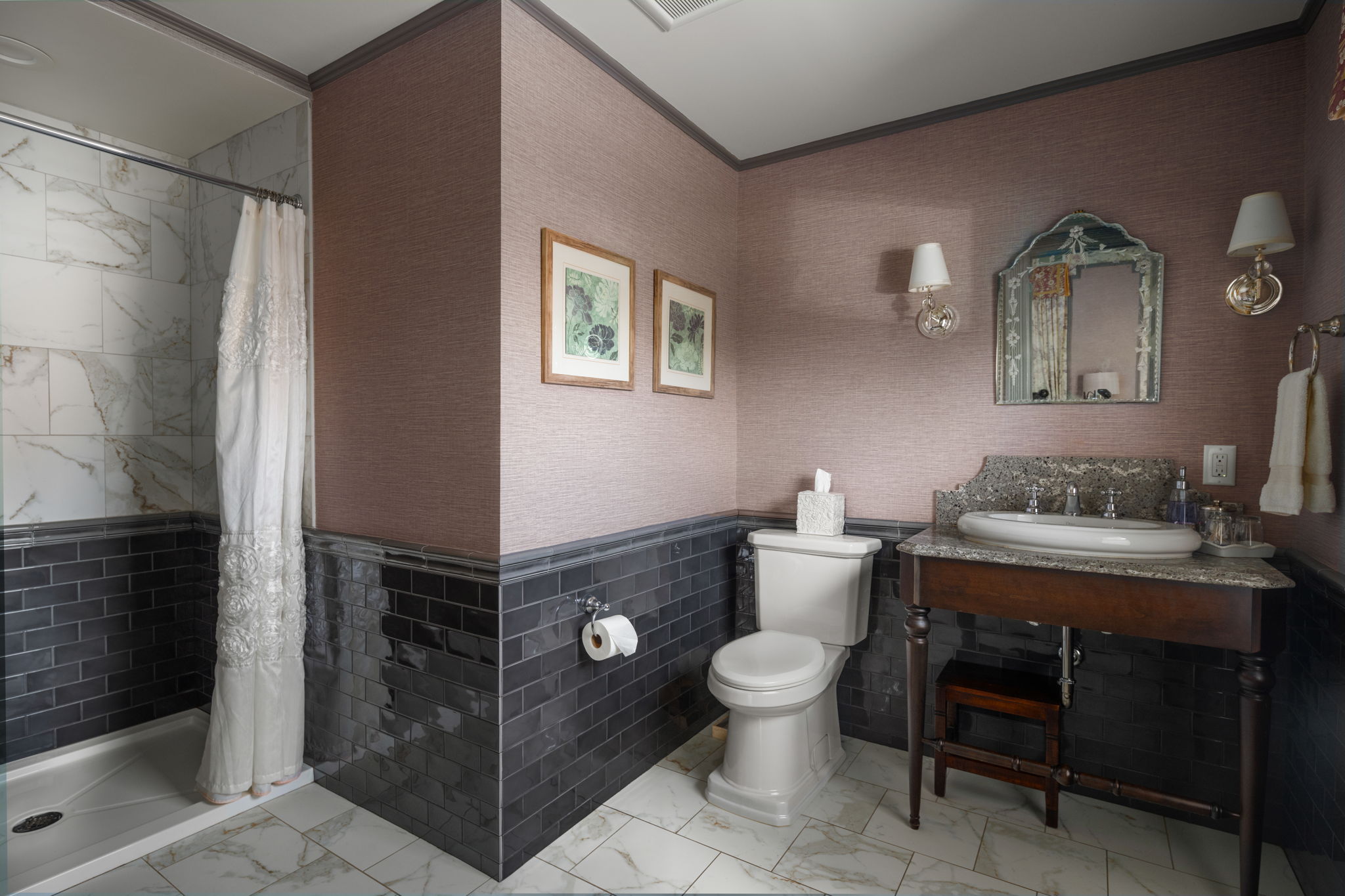 The sale comes fully-furnished: 4 Guest BRs, 5BA, 7 fireplaces, 2 balconies, turret & remarkable historic detailing thru-out, and a solid 10yr book of business!