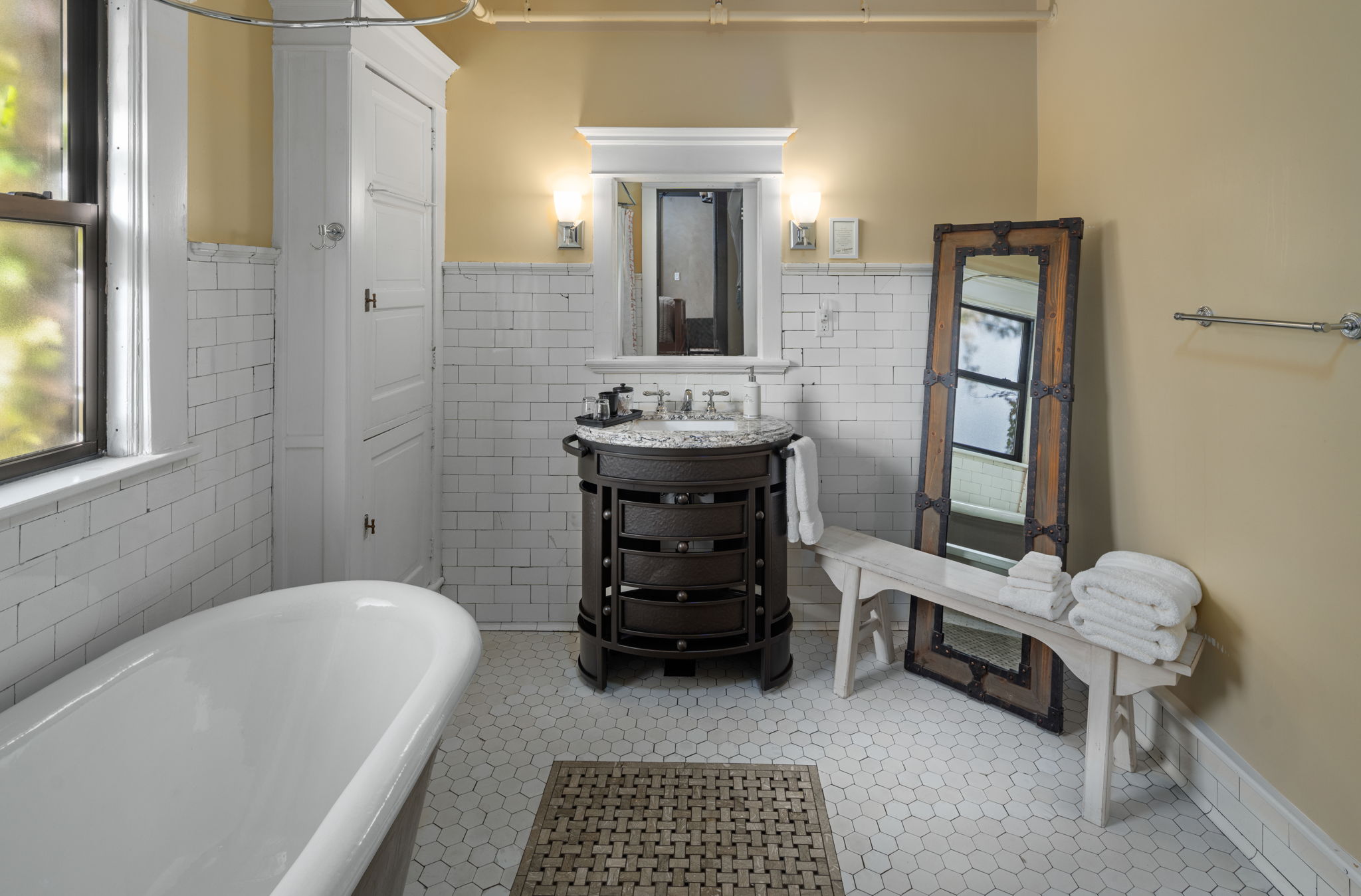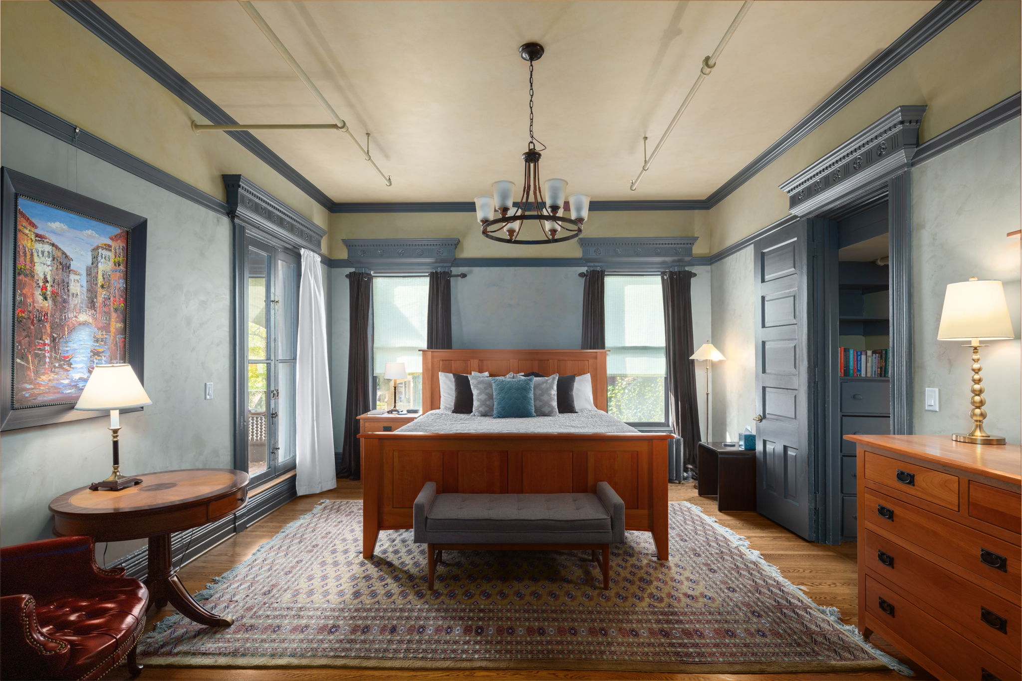 The Owner’s Residence in the former “servants’ quarters” has a high-end kitchen (Sub-Zero, Miele, Cambria), Master BR Suite w/ historic details & carrara marble BA. A 5,200SF midcentury addition, currently occupied by a preschool provides steady flow of passive lease income.