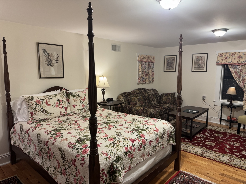 The Main Inn features eight uniquely appointed guest rooms, each with a private bath, cable TV and complimentary wireless Internet service. The Carriage House provides two suites each with a gas fireplace and Jacuzzi tub. One suite is fully ADA equipped. Each morning, a bountiful country breakfast is served in our dining room. Homemade cookies, specialty teas, and our coffee/espresso machine are always on hand in the living room.